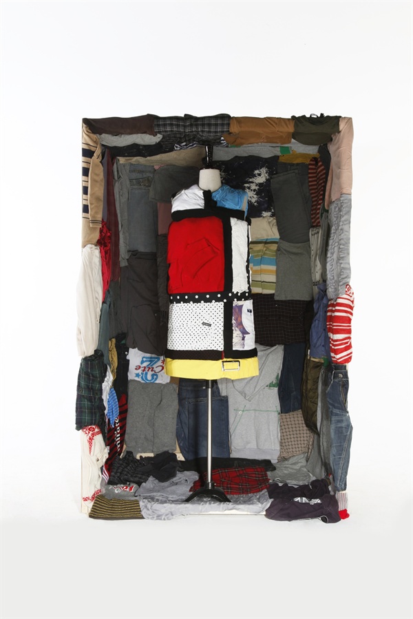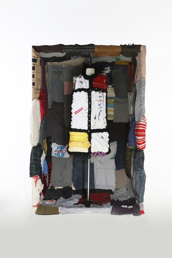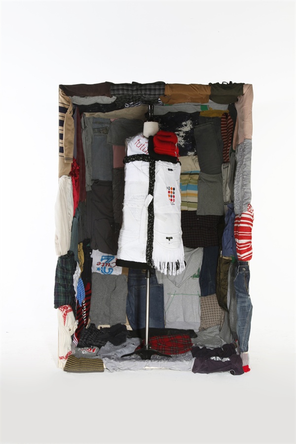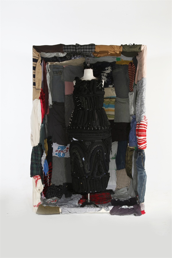 得出的最终思路用卷和折叠(最常见的衣物储存方法)去重复经典,把时尚的经典时装作品,用旧衣模拟其的形态,表达经典也是旧衣服,这些即将被扔掉的旧衣服也是经典的一种延续。