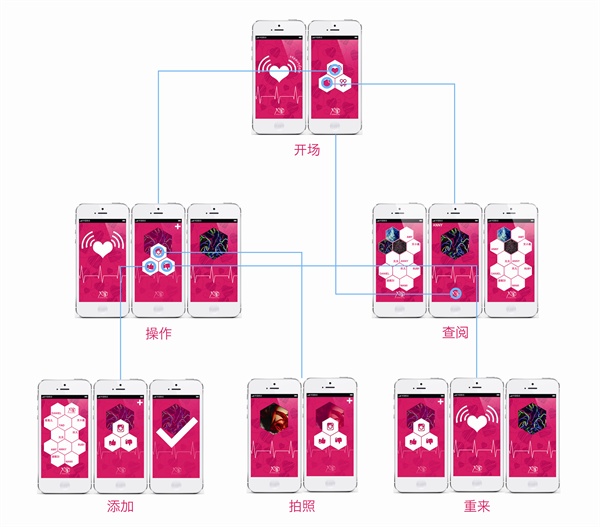 通过对于基于通感的视觉与痛觉符号的信息传递的研究,产生了这个运用视觉与听觉多角度全方位的将“移觉”运用在奇偶户设计中的想法,出发点便是人的情感,因而以“心动”为主题,设计了这样一个名为“心笙”的移动应用,运用摄像头测试还原我们心动瞬间的心跳声,从而更直观的利用心跳声和图像表达自己的情感,更客观也更感性浪漫。同时上传到网站上,记录与分享此时此刻的感觉。