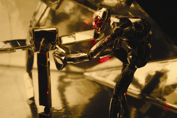 我的作品主要想表达的是人的追求变化的一个状态,作品里面一共有两个人物,主角是一个有人形的造型和一只蜘蛛。主角代表人的状态,蜘蛛是他的对手也是表达他追求的目的,背景空间是代表社会的环境,主角,蜘蛛和背景都有反射效果。我的作品可以算在实验动画里面因为我通过实验和抽象的手法来表现我的概念。背景故事是关于主角在蚕所空间的时候出现一只蜘蛛,他发现自己想变成蜘蛛的形象所以他找方法实现目标,到最后实现了目标但是按照自然的规律蜘蛛要换皮,换皮之后蜘蛛变成回来的形象然后主角已经消失。我所使用的手法是定格动画加上电脑后期效果。声音也是我自己创作包伙背景音乐和音效。