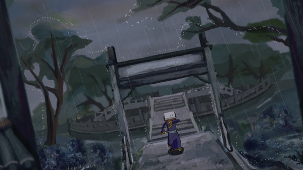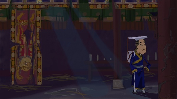 我将整个故事的背景建立在富含浓墨重彩的中式寺庙内,想做出充满魔幻色彩,并且充满了冒险精神的挑战与目不暇接的法术较量的短片动画。既然主题在一个斗字,动作的变化和镜头的转场自然而然就是本片的主要刻画之处。