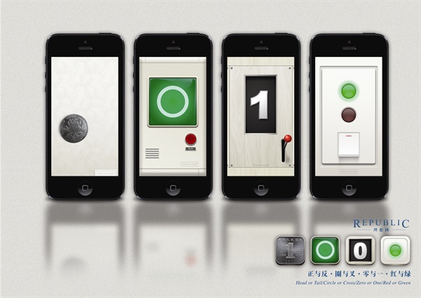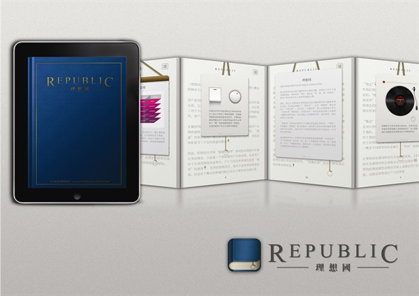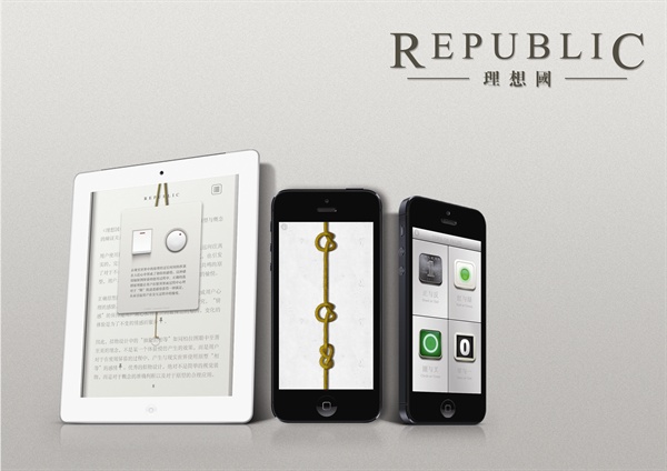 项目分为四个部分,第一部分是“理想国”交互电子书,通过拟物设计的方式,讲“阅读”概念结合与电子阅读“点状”的信息阅读方式相结合,用互动的方式阐述了对于拟物设计发展轨迹的分析。 “二选一”“沙漏”系列则分别从横向与纵向的角度研究了拟物级别、拟物原型、拟物概念以及功能体验四者的辩证关系。“结绳记事”则根据前三者得出的理论,通过对于概念原型的分析与再设计,试图做出完美使用原型的拟物设计。