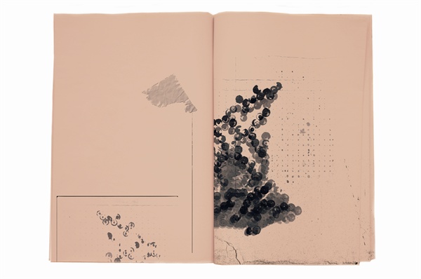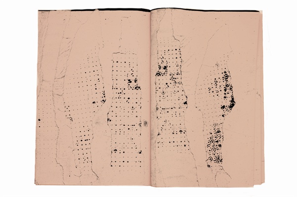 今年毕业设计工作室主题为:女性。而基于我而言,父权制下的话语霸权让我与其他同样作为“女儿”这样一个角色的人有些不同。像是找准坐标,然后按钉直至按满,我与父亲的沟通以一种目的性的强制性的方式出现,潜移默化的影响着我看待事物的方式。大多数人看来,女性在两性中属弱势,更容易受到伤害。如同纸质中的宣纸一样,易皱易损,但是它积攒到一定数量变成一沓宣纸的时候,哪怕是图钉也很难按穿它们,可能第一张已经被拉扯破损,布满针眼,看不出什么形态,但可能在最后一张纸上确一个针眼也没留下。当人生的厚度增加,什么问题翻过这一页就又都好了起来。通过我自身跟父亲的关系引申出当今父权社会下父女关系的发展,是否应该用更加婉转可调节的方式,而不是如同板上定钉一样绝对和强制。展出的四本书分别是设计叙述,过程展示,以按钉方式完成的画。