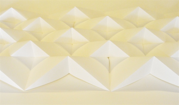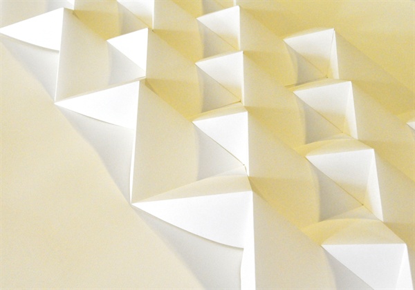 折纸这一手工制作方面这一兴趣点引入到中期汇报时有关信息在空间之间的变换问题上,直到现在确立最终题目主题是《网格效应》——以折纸探究图形、文字在多维空间的信息分布及编排关系,目的是把人们生活中的二维平面的印刷品通过我定义的折纸规则将其变换为多维空间的状态,当人从多维度空间的多角度来阅读这个印刷品时所获取的信息量、阅读方式、人的视觉中心以及其多维形态展开后的折痕所构成的网格结构与二维平面空间的版式网格在信息编排上之间的关系。