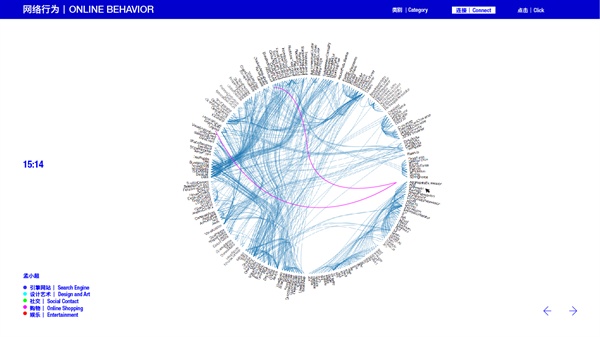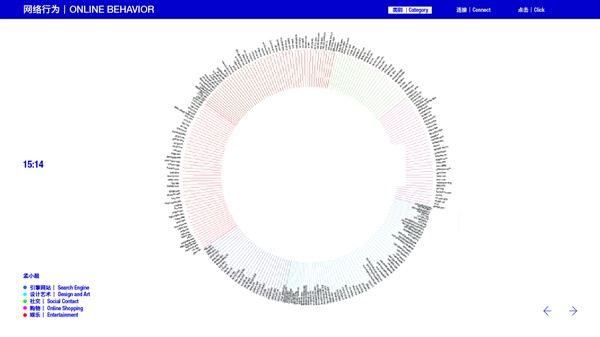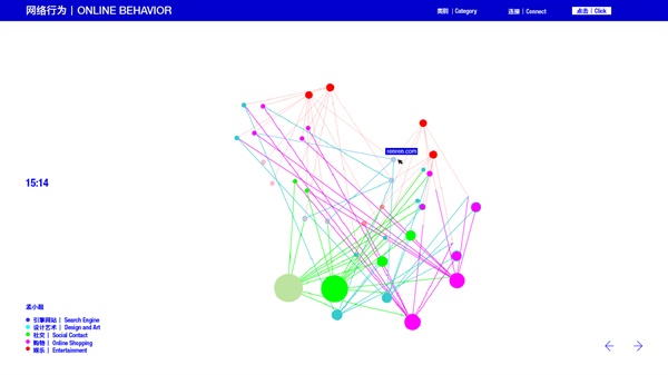 面对一个信息大爆炸的负荷时代,我用设计的方法准确清晰的呈现这一数据与形象。利用重新构造的数字软件来记录网页上时间消耗的人,并用视觉化的方式反映出来虚拟世界的真实状态。同运用我调查收集的数据去建立起一个新的视觉的结构,让这类人群更加了解自己网络的行为。并把平面设计从二维拓展到三维里来,用一种诙谐手段来进行不同维度中视觉化探讨的可能性,得出的信息图形以实时的更新而产生变化,生动及时的体现网络中屏幕与人在不同的空间通过网络进行交流沟通。