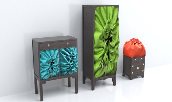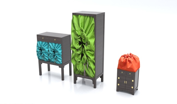 作品通过研究家具设计中的“互动性”入手,试图改变人们日常生活中的常规的家具互动方式。作品以一组三件,储物柜的形式出现,通过对柜子打开方式的研究,找到它与人们的日常用品——包之间,具有的极大地共通性,却又是两个截然不同类型的生活用品。因此,在不同中找到他们的共通点,再通过置换、组合等形式,找到可以表现的载体形式,一样的打开方式,不一样的互动体验。将其两者的打开方式进行组合,目的是想以此为切入点,通过对家具中互动方式的设计来使人们感受到异于常规的互动体验,从而达到使用的趣味性。