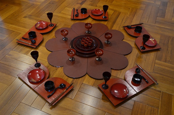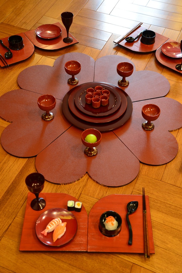 以“花”的造型为主题,每一瓣“花瓣”是一人份的餐具,但同时花心中也有共享的餐具,这样不仅能够保持日本人饮食的习惯,又能表现出个人与集体的联系。