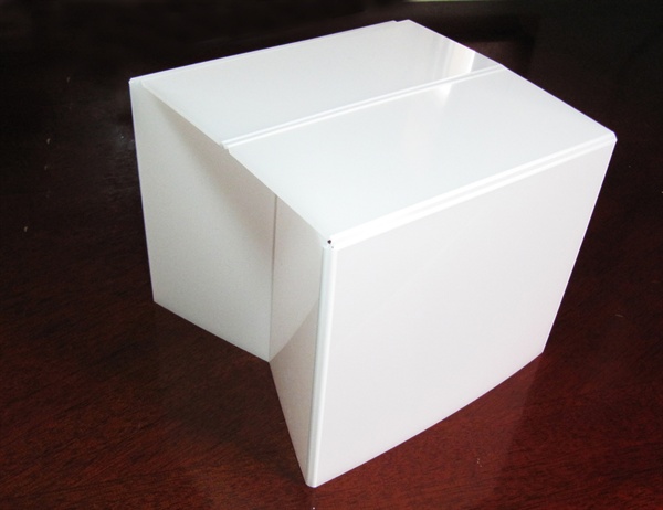 PP板具有透光性和良好的韧性,折叠后强度不会减弱,利用CNC数控加工对PP板(聚丙烯板)进行开槽、打孔、切割和焊接,然后弯折连接成体。可折叠收束,每个单元体都可拆卸单独使用。