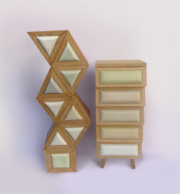 模块化木质家具与模块化可替换陶瓷相结合的组合柜子。