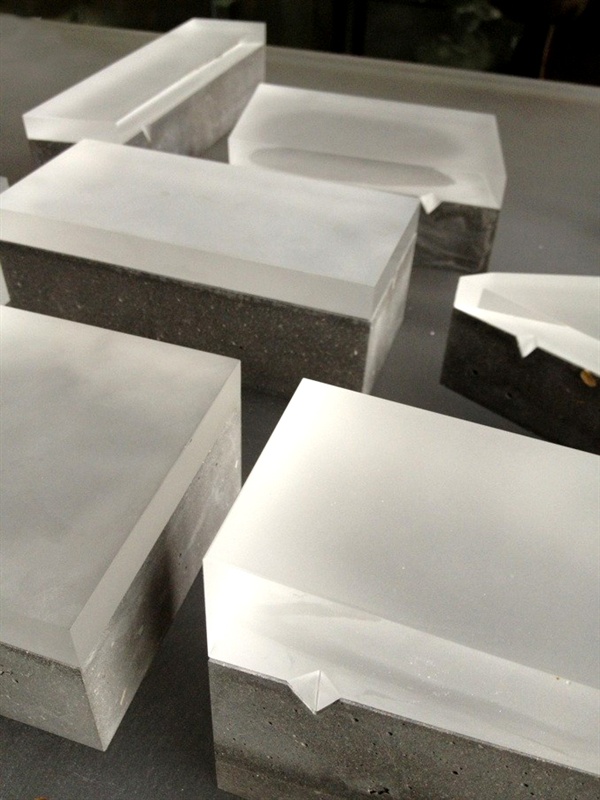 • 我的每件作品都是由不同材质为基本元素组成,每个元素之间都存在一种联系,而连接方式是这种联系方式的桥梁。因此我以材料结合与连接方式为出发点,主要研究玻璃材料,与木头、混凝土等材料进行结合,创作出一系列毕业设计作品。让人参与自己作品的互动,这种互动是简简单单的一种打开方式,但在打开的一瞬间,让开启人寻求新的启发和领悟。作品的实用功能则取决于制作工艺和形态,并且可延伸多种可能性。每一种材料都直接体现了其工艺属性及特点,以切面立体形态呈现,体现视觉效果的同时赋予其功能性与艺术性。