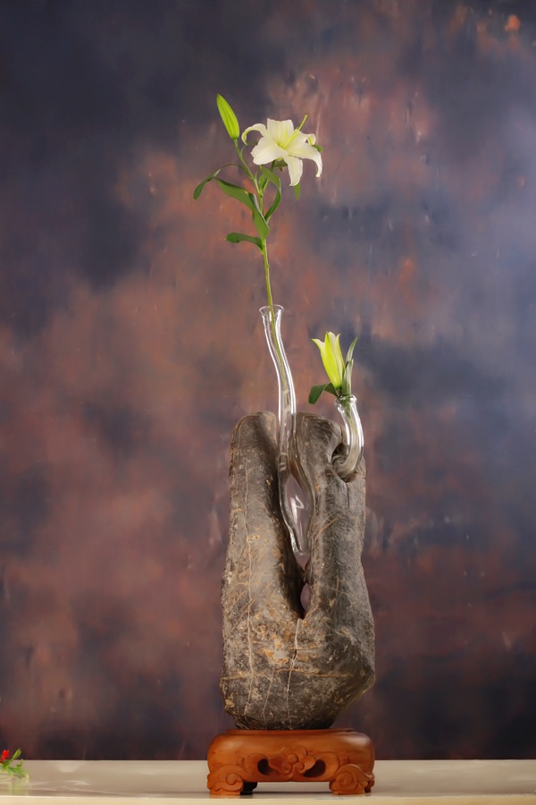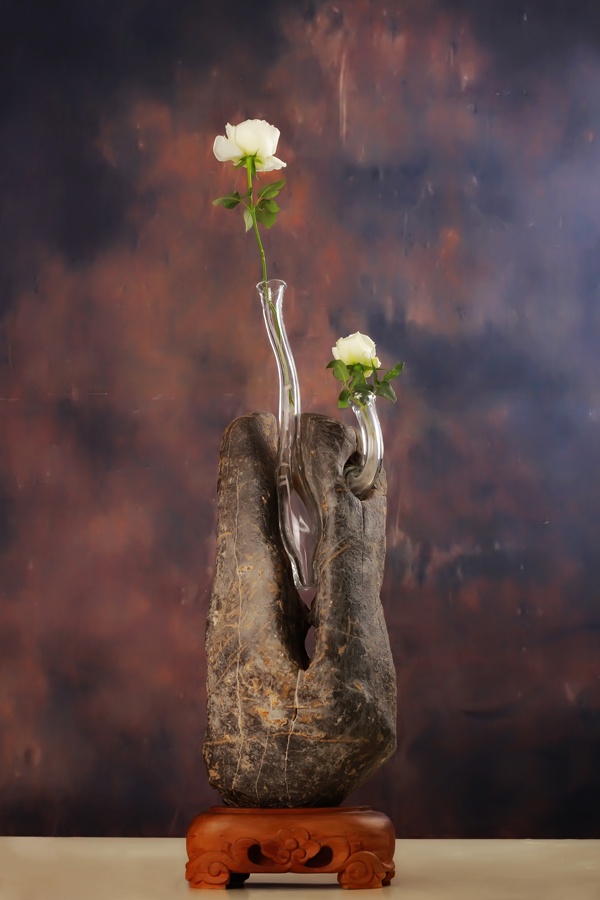 作品灵感来源于家乡的石头,家乡的石头用有多样朴实的肌理以及自然形成的孔洞。希望利用于套模吹制方法制作玻璃摆件,让玻璃这种材料获得石头般朴实的效果。 而且手工套膜与工业大规模生产的模具以及铸制常用的蜡模相区分,手工套膜更加随意和多变,产生很多不受控制的效果。其中选用当地的大小青石作为作品套膜进行吹制,在玻璃制品的表面产生出凹凸原始的效果。利用石头与玻璃进行挤压。让玻璃的一部分获得石头孔洞、凹谷的负形,而另一部分还是保留玻璃光滑的一面,形成新的效果。然后挑选制作的玻璃与石头相结合,相符相成。